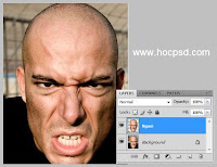 9 - Bấm Ctrl - L chỉnh cho layer này thêm sắc nét một ít,dùng công cụ Eraser với nét cọ mềm đường kính khoảng 15px Opaciry khoảng 20 xóa nhẹ xung quanh phần mắt,miệng để thấy được rõ hơn.Ta có kết quả như sau:
