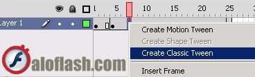 Click vào bất cứ nơi nào giữa 2 frame 1 - 4 và 4 - 25 nhấp chuột phải chọn Greate Classic Tween.