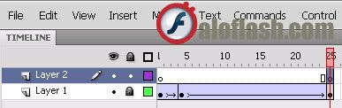 Tạo 1 layer mới, click vào frame thứ 25 và nhấn F6 để chèn keyframe trắng