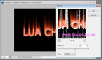 ,click chuột vào file bạn vừa tạo(khi bạn click chuột vào file ảnh toàn bộ file ảnh sẽ chuyển sang màu đỏ) nhập vào dòng chữ "LUA CHAY" .Xong click chọn công cụ Move để thoát lệnh,sau đó di chuyển dòng chữ (lúc này dòng chữ chỉ là vùng chọn) vào giữa file ảnh.Tiếp tục chọn lệnh Select \ Modify \ Expand,nhập giá trị 2px (các bạn có thể bỏ qua lệnh này nếu không muốn nét chữ to hơn).Cuối cùng bấm Alt-Delete để tô màu foreground cho vùng chọn và bấm Ctrl-D để hủy chọn.