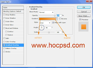 11 - Bấm Ctrl - Enter xong fill một màu bất kỳ.Tiếp tục chọn "Add a layer style" rồi chọn Radient Oveylay như sau: