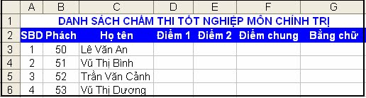 Bước 1: Thiết lập bảng chấm thi.