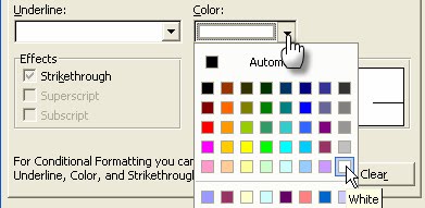 +Nháy vào mục Format, trong mục Color chọn màu trắng.